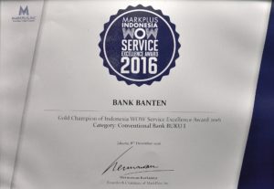 Pada kesempatan ini, Bank Banten menyabet 3 penghargaan bergengsi yaitu Gold Champion of Indonesia WOW Service Excellence Award 2016 untuk kategori Conventional Bank BUKU I, Gold Champion of Indonesia WOW Service Excellence Award 2016 untuk kategori Conventional Bank BUKU I Regional Sumatera, dan Silver Champion of Indonesia WOW Service Excellence Award 2016 untuk kategori Conventional Bank BUKU I Regional Sulawesi & Papua. MarkPlus, Inc. melalui salah satu divisinya yaitu MarkPlus Insight, telah menyelenggarakan survey Service Excellence di 18 kota di Indonesia terhadap 20.919 responden dari 8 kategori industri, dengan mengadaptasi konsep WOW Marketing yang dikembangkan Philip Kotler dan Hermawan Kartajaya, dari bulan Juli-September 2016.
